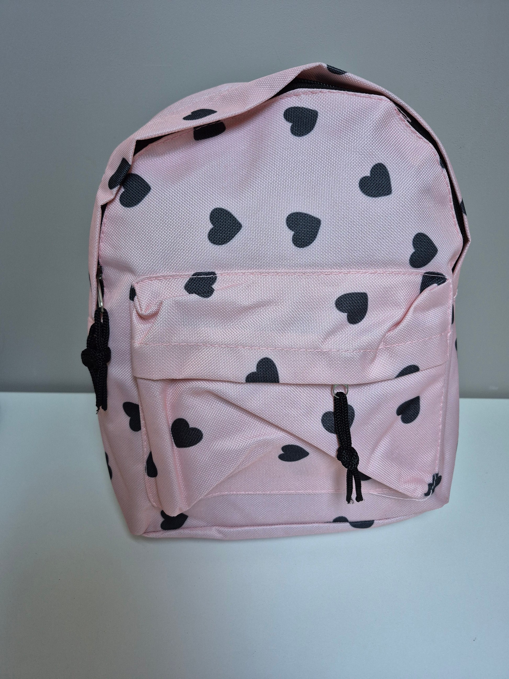Kinder Rugzak Roze met hartjes – Peuter & Kleuter Rugtas met Voorvak – 28 x 21 cm